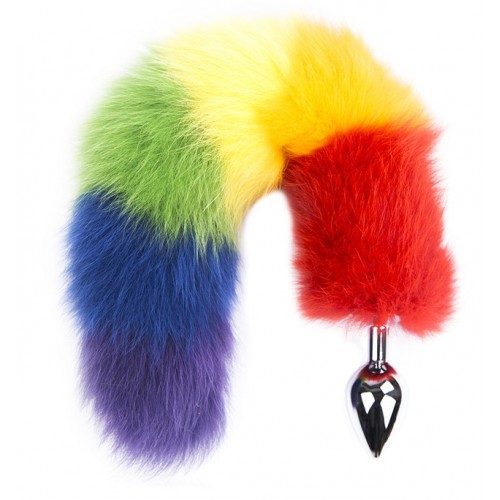 ЗакрытьМеталлическая анальная пробка M с длинным разноцветным хвостиком 43 см