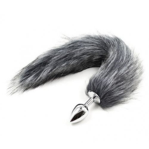 ЗакрытьМеталлическая анальная пробка S с длинным серым хвостиком 42 см