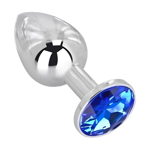 ЗакрытьМеталлическая анальная пробка с синим камушком M