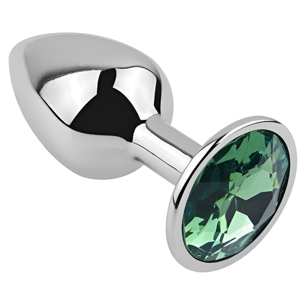 ЗакрытьМеталлическая анальная пробка с зеленым камушком M