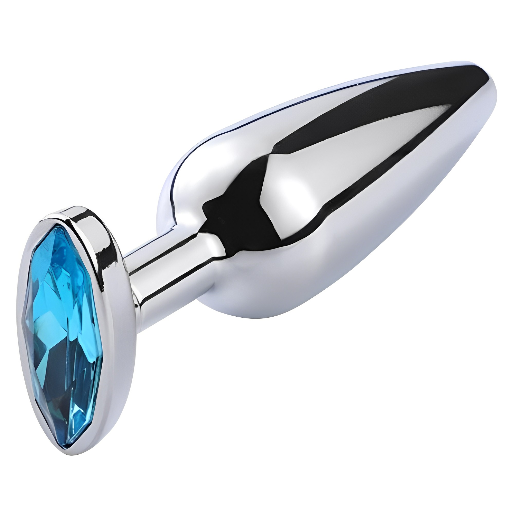 ЗакрытьМеталлическая анальная втулка с голубым камушком