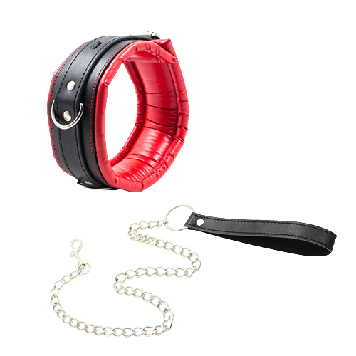 ЗакрытьМягкий черно-красный ошейник с поводком