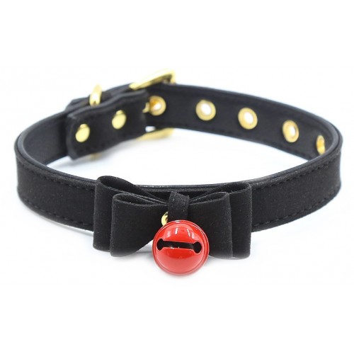 ЗакрытьОшейник черного цвета декорированный бантом и бубенчиком