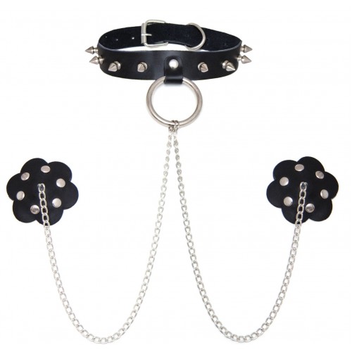 ЗакрытьОшейник с шипами и пэстисами на цепочках