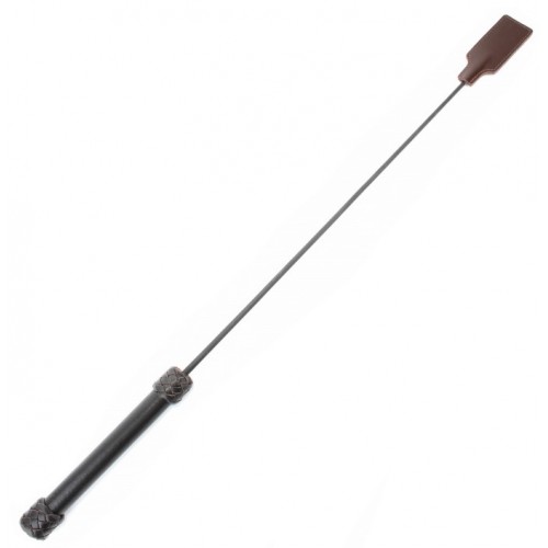 Профессиональный стек, оплетенный натуральной кожей коричневого цвета, имеет на конце девайса длинный кожаный шлепок.