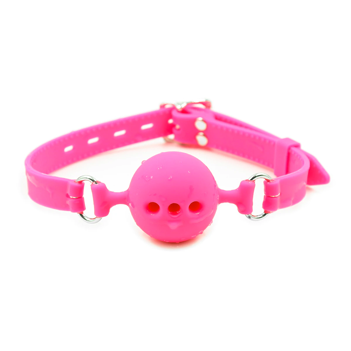 Кляп выполнен в виде силиконового шарика красного цвета с отверстиями.