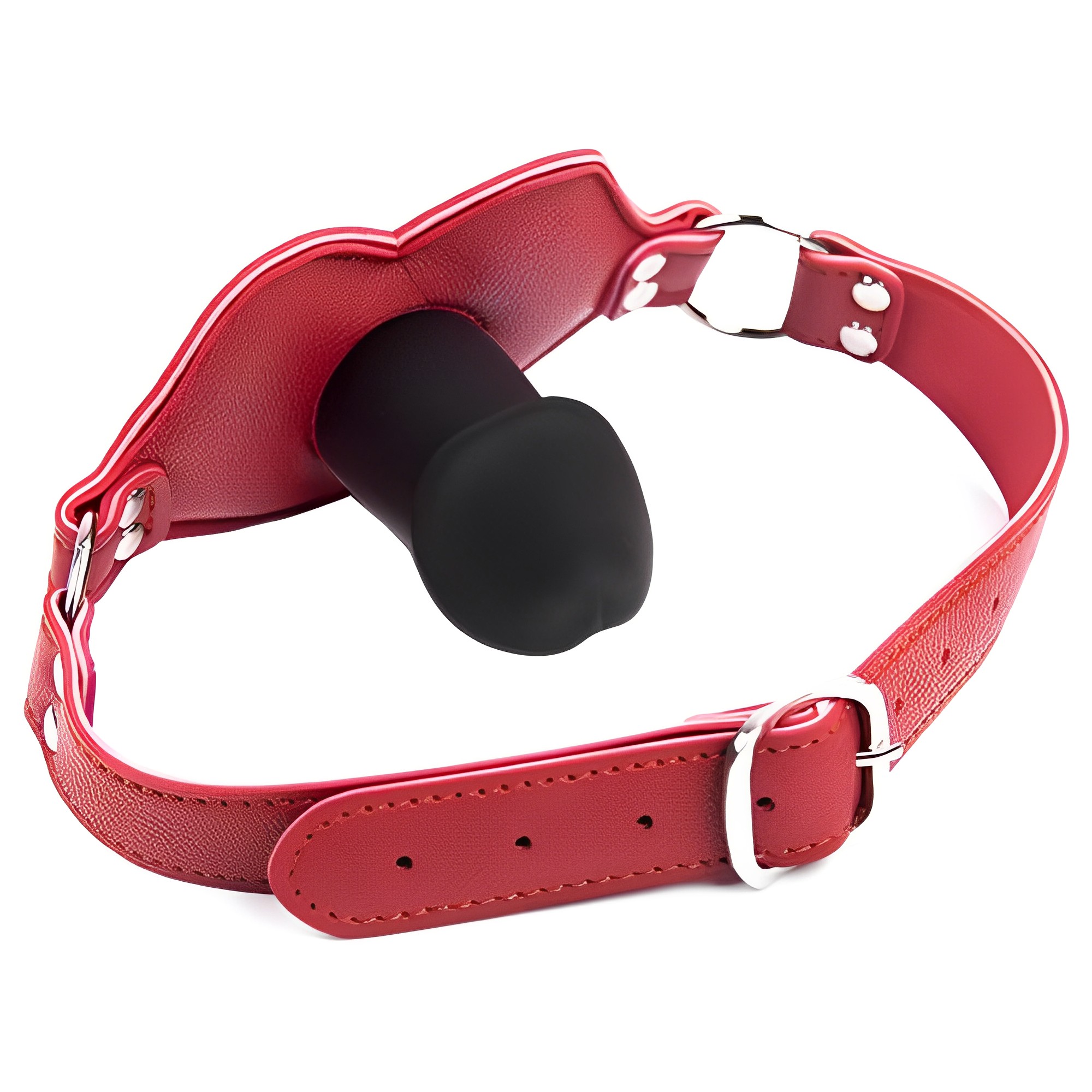 ЗакрытьСиликоновый кляп-фаллос на красном ремне в виде губ