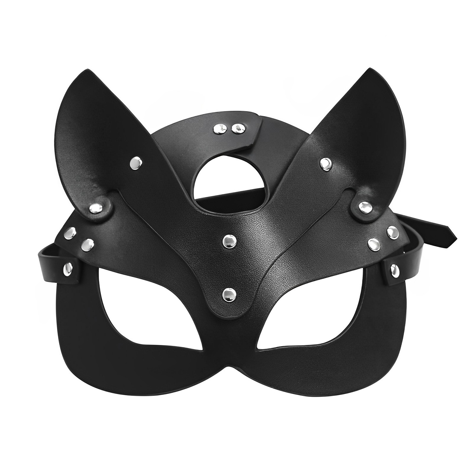 Маска "Кошка" – выполнена из плотной искусственной кожи черного цвета, благодаря чему великолепно держит свою форму. Декорирована металлическими заклепками.