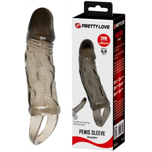 ЗакрытьУвеличивающая насадка на пенис с петлей под мошонку черного цвета Penis Sleeve Brayden + 3 см
