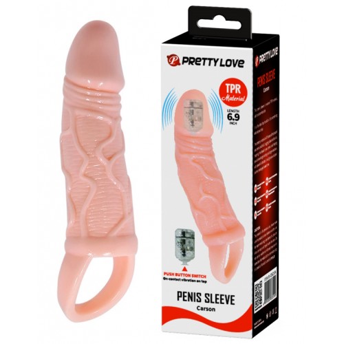 ЗакрытьУвеличивающая вибронасадка на пенис с петлей под мошонку телесного цвета Penis Sleeve Carson + 3 см