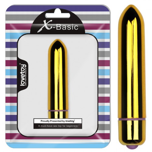 ЗакрытьЗолотистая вибропуля X-Basic Bullet Long Lovetoy с 10 режимами вибрации