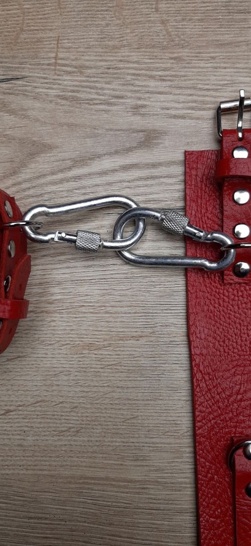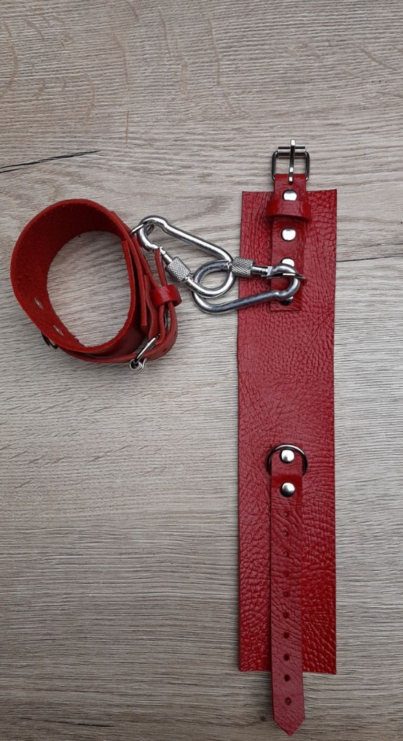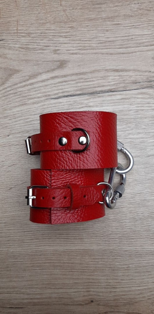 Наручники красные с карабином, натуральна кожа, 3292-27, 3292-27