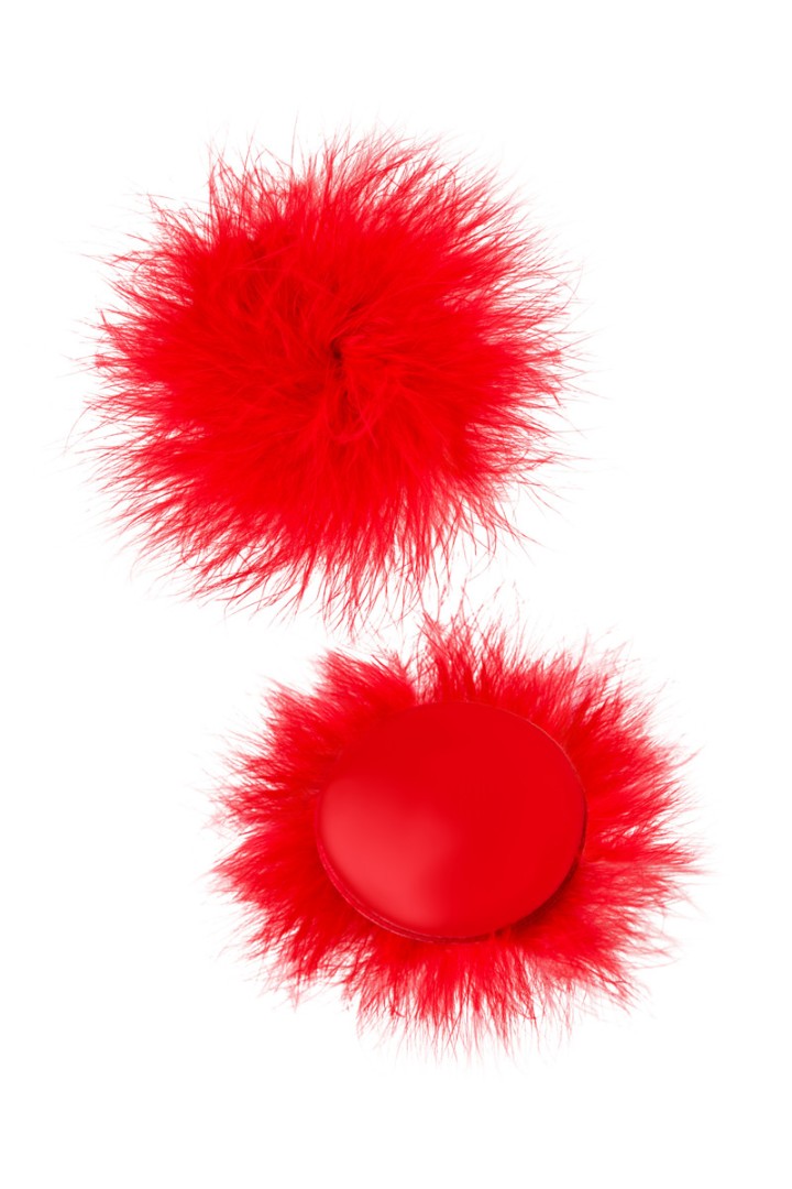 Наклейки на соски многоразовые. Однотонные. Основание выполнено из полиуретана, внутри — слой силиконового геля. Декор: искусственная кожа, пух. Размер основания: 5 см.