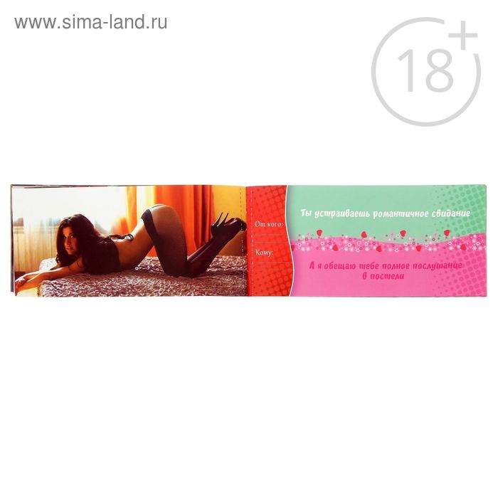 Исполните все желания друг друга вместе с игрой "Мои желания - твои обещания"! Выбираете купон, аккуратно отделите его от корешка, укажите кому предназначено желание и действуйте. Теперь можно с радостью будет выполнять любые домашние дела, ведь вас ожидают романтические и эротические сюрпризы! В набор входят 20 купонов.