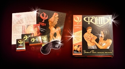 В комплекте подробная инструкция, 200 карт, Каталог с изображением сексуальных поз, маска и фишка для жеребьёвки.