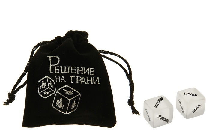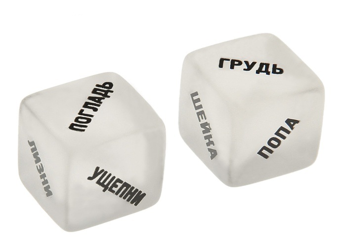 Добавьте в свои интимные отношения нотку игры! Бросайте кубики одновременно, определяя, что вам нужно сделать с той или иной частью тела партнера: укусить за попу или, к примеру, лизнуть его грудь. Два кубика с шестью различными гранями − это интригующий, завораживающий процесс, который обязательно подарит вам новые яркие ощущения