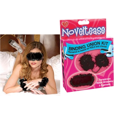Набор для эротических игр влюбленных пар. Нежные браслеты на резинках с цепочкой ограничат движения девушки. Маска на глаза погрузит женщину во мрак и чувствительность ее тела повысится. Поиграйте с ее эрогенными точками, пусть тело станет музыкальным инструментом, а мелодией будут ее стоны наслаждения. Наручники имеют перьевую опушку, ими тоже можно делать эротический массаж из нежных щекотящих прикосновений.