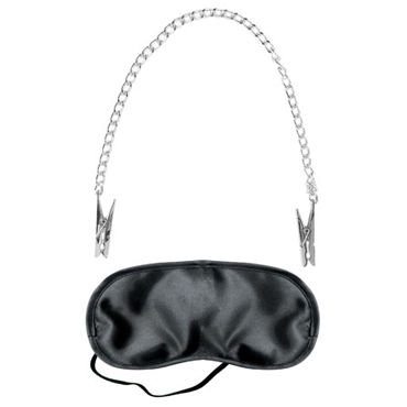 Кляпа, анальной пробки, наручников, стека с перьями, маски на глаза, 2-х зажимов для сосков, восковой свечи, мини вибратора с различными насадками и двух отдельных шариков.