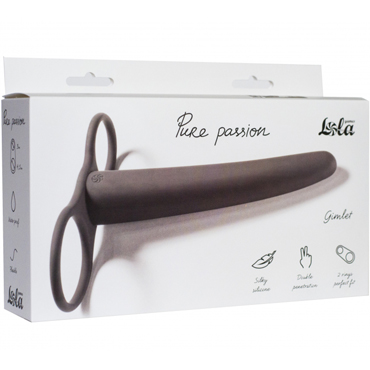 Насадка для двойного проникновения Lola Pure Passion Gimlet из гипоаллергенного силикона. Идеально гладкая и гибкая. Имеет два кольца, которые крепятся на основание пениса и мошонку.