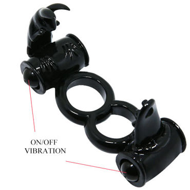 Кольцо с двумя вибропулями Baile Sweet Vibrating Sweet Ring, черное, 32349, 32349