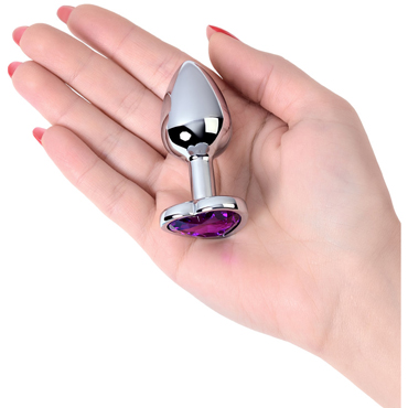 Серебристая анальная пробка Toyfa Metal выполнена из металла. Благодаря узкому кончику и идеально гладкой поверхности игрушка не доставляет дискомфорта во время использования. На гладкой поверхности ниже вероятность развития вредоносных бактерий и за ней легко ухаживать. В основании - ограничителе пробки установлен яркий страз в форме фиолетового сердца. Анальная пробка станет прекрасным аксессуаром для женской попки.