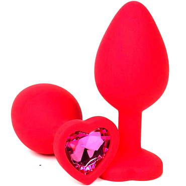Силиконовая анальная пробка из коллекции анальной ювелирки, декорирована большим сверкающим кристаллом в виде сердца.
