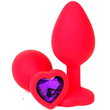 Силиконовая анальная пробка из коллекции анальной ювелирки, декорирована большим сверкающим кристаллом в виде сердца.