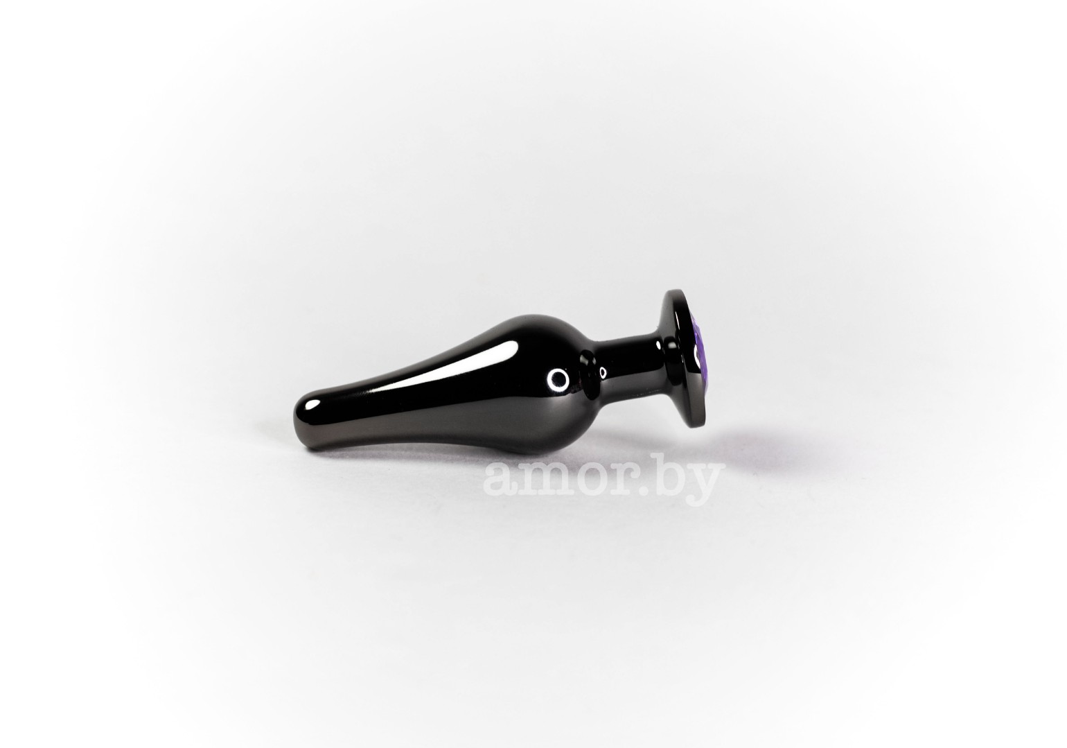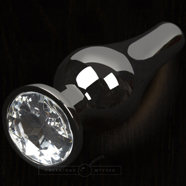 Анальная пробка выполненная из металла. Благодаря узкому кончику и идеально гладкой поверхности игрушка не доставляет дискомфорта во время проникновения и использования. На гладкой поверхности ниже вероятность развития вредоносных бактерий и за ней легко ухаживать. В основании - ограничителе пробки установлен круглый прозрачный страз.