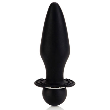 Черная конусовидная пробочка с мощной вибрацией и пульсацией