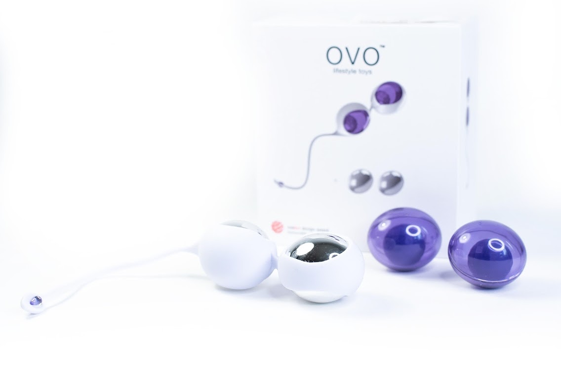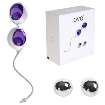 Вагинальные шарики Ovo имеют изысканную форму петельки с драгоценностью, помогут Вам и Вашему партнеру усилить ощущения от секса. Шарики тренируют мышцы влагалища и делают его стенки более эластичными, благодаря чему Вы сможете нежно сжимать пенис мужчины, доставляя ему и себе незабываемое удовольствие. Влагостойкий тренажёр сделан из безвредных материалов, не вредных для организма. В комплект входят две пары шариков разного веса 35 и 45 грамм, которые легко сменить благодаря углублениям для пальцев.
