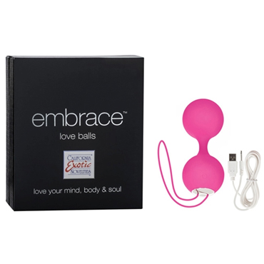 California Exotic Embrace Love Balls – это небольшие по размеру вагинальные шарики, оснащенные функцией вибрации. Данная модель выполнена из гипоаллергенного медицинского силикона. Игрушка имеет два мощных моторчика, которые обеспечивают семь режимов вибрации, пульсации и эскалации.