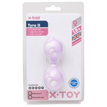 X-Toy Tyro II – пластиковые вагинальные шарики в гипоаллергенной силиконовой оболочке, имеют смещенный центр тяжести, для более эффективной тренировки мышц влагалища. Шарики соединены между собой на гибкой сцепке и оснащены удобной петелькой для извлечения. Постоянные занятия с вагинальными шариками обеспечат Вас более сильными ощущениями от секса, а также благоприятно повлияют на здоровье женской половой системы. Тренировки с вагинальными шариками не только полезны, но еще и очень приятны