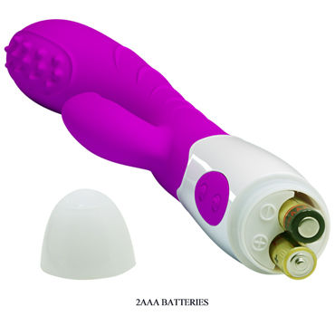 Baile Pretty Love Bruno – вибратор из гипоаллергенного, мягкого и приятного на ощупь материала. Секс-игрушка обладает стволом специальной формы для максимально эффективной стимуляции точки G, на головке расположены мягкие стимулирующие пупырышки. Дополнительный отросток обеспечит массаж в области клитора. Вибратор имеет 7 режимов вибрации. Водонепроницаемый корпус дает возможность использовать его в душе или ванной