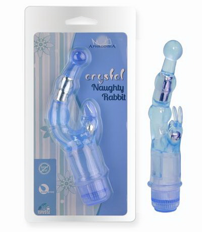 Необычный полупрозрачный вибратор голубого цвета имеет рельефную поверхность, анатомическую форму и клиторальный отросток в виде кролика с ушками. Двойное удовольствие от игрушки с вагинально-клиторальной стимуляцией и несколькими режимами вибрации - что может быть лучше! Вибратор так же можно использовать анально, что является дополнительным плюсом в выборе подобных девайсов. Играйте с ней и в постеле и в душе, ведь она аболютно водонепроницаема.