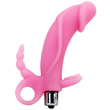 Реалистичный вибратор из нежнейшего силикона имеет 2 сюрприза для дополнительной стимуляции. Помимо рельефного крепкого фаллоимитатора с ярковыраженной выпуклой головкой, он имеет небольшую и мягкую щеточку, которая деликатно и очень чувственно будет массировать клитор. Кроме того, эта конструкция снабжена миниатюрным отростком для стимуляции ануса. Мощнейшие волны невероятного экстаза сразят вас наповал! Не каждый опытный мужчина сумеет также умело и одновременно массировать самые чувственные места, как этот чудо-вибратор! У основания имеется удобный держатели и в порыве страсти он не выскользнет из расслабленных рук. Мощность вибрации регулируется кнопкой у основания игрушки.