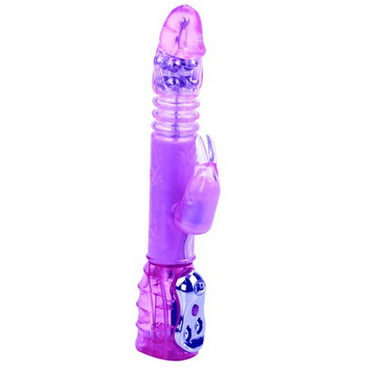 Вибромассажер с клиторальным стимулятором с возвратно -поступательными движениями. Вращающиеся шарики и клиторальный стимулятор в виде кролика с нежными ушками дарят восхитительные ощущения. Имеет многоскоростной мини электромотор (режимы вибрации и вращения), переключается с помощью удобного пульта на основании