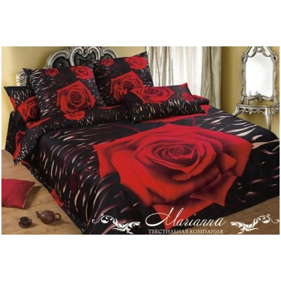 Роскошной женщине – роскошное ложе. И, соответственно, такое же постельное бельё.«Грация» — это исключительно богатый, как цветовой гаммой, так и декором комплект. Он изготовлен из набивного атласа чёрного тона с разными цветовыми вкраплениями и большими алыми розами. А все мы знаем, что сочетание красного и чёрного дают самое мощное сексуальное возбуждение.