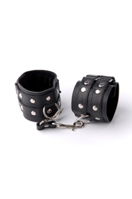Кожаные наручники комфортно закуют запястья двойными регулируемыми ремешками, а одно кольцо карабин зафиксирует запястья в нужном положении. Запястья наказуемого будут принудительно близко.