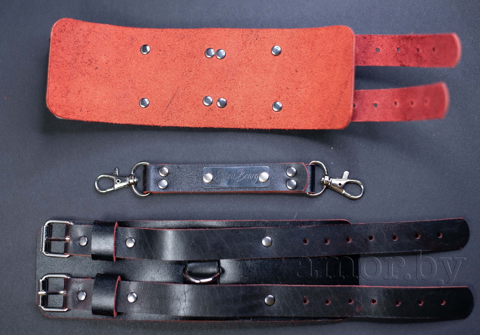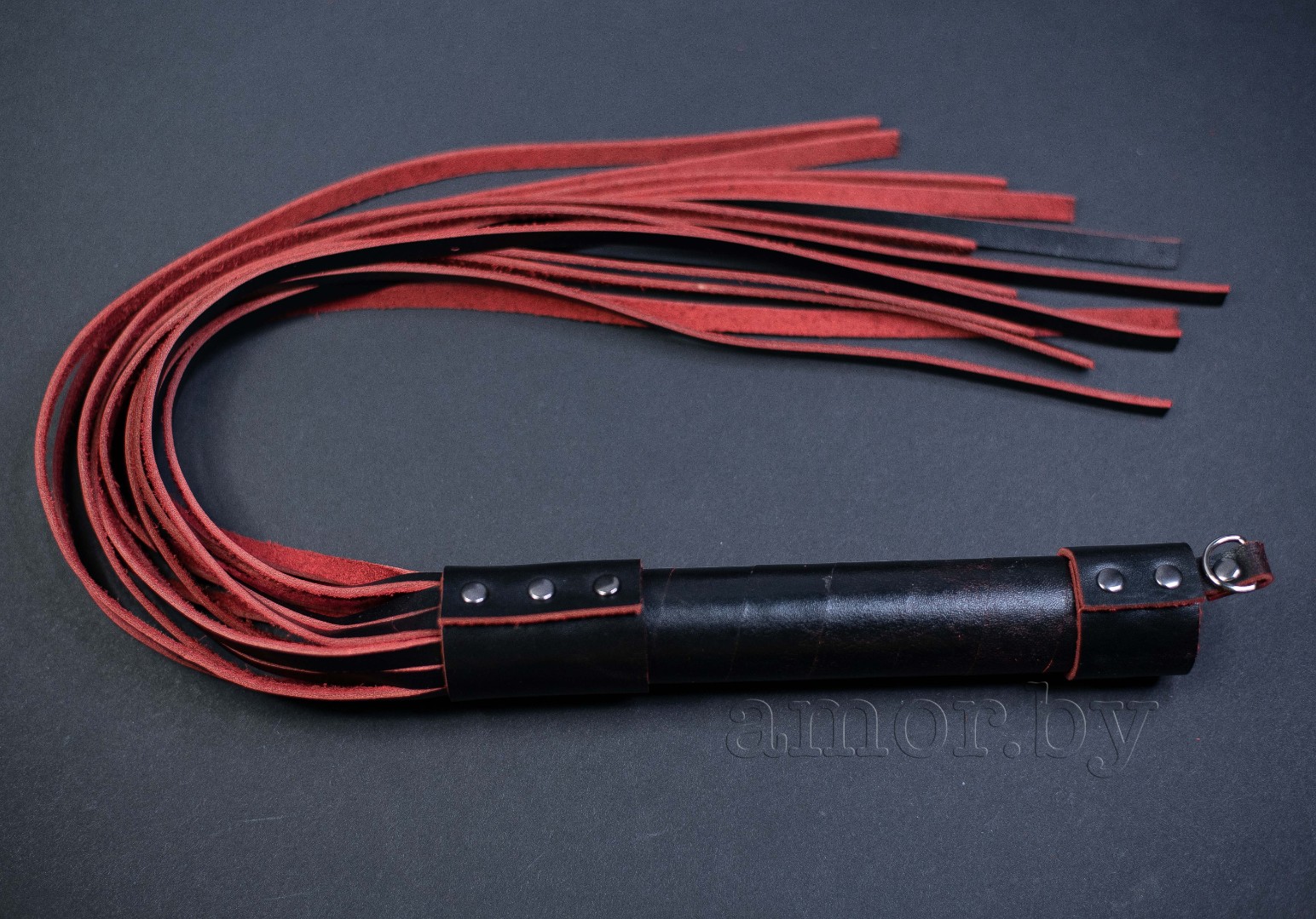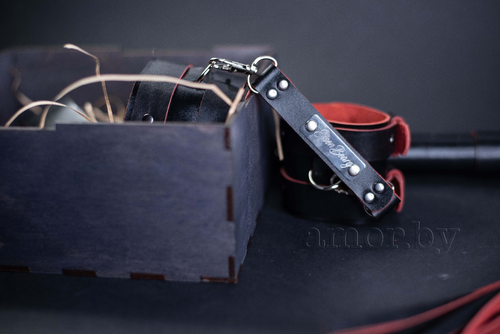 Данный набор состоит из кожаных наручников, ошейника с металлическим поводком и плети-флогера. Удобная ручка на рукоятке флогера делает использование комфортным и позволяет не убирать аксессуар во время игры. Общая длина плети 60 см.
