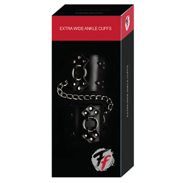 Fetish Factory Extra Wide Ankle Cuffs – широкие оковы для фиксации ног из люксовой коллекции BDSM аксессуаров. Фиксаторы черного цвета выполнены из прочной натуральной кожи, декорированы металлическими заклепками и хромированными кольцами, браслеты соединены между собой прочной цепочкой. Стильный строгий дизайн создаст особую атмосферу ролевой игры. Браслеты регулируются по размеру при помощи пряжек.