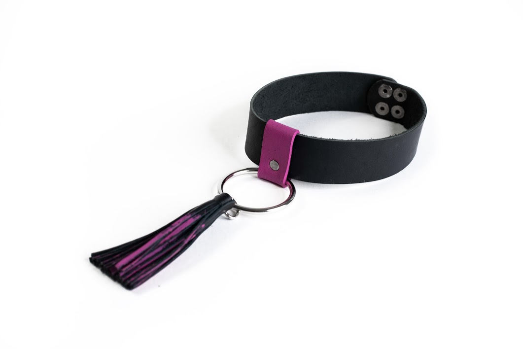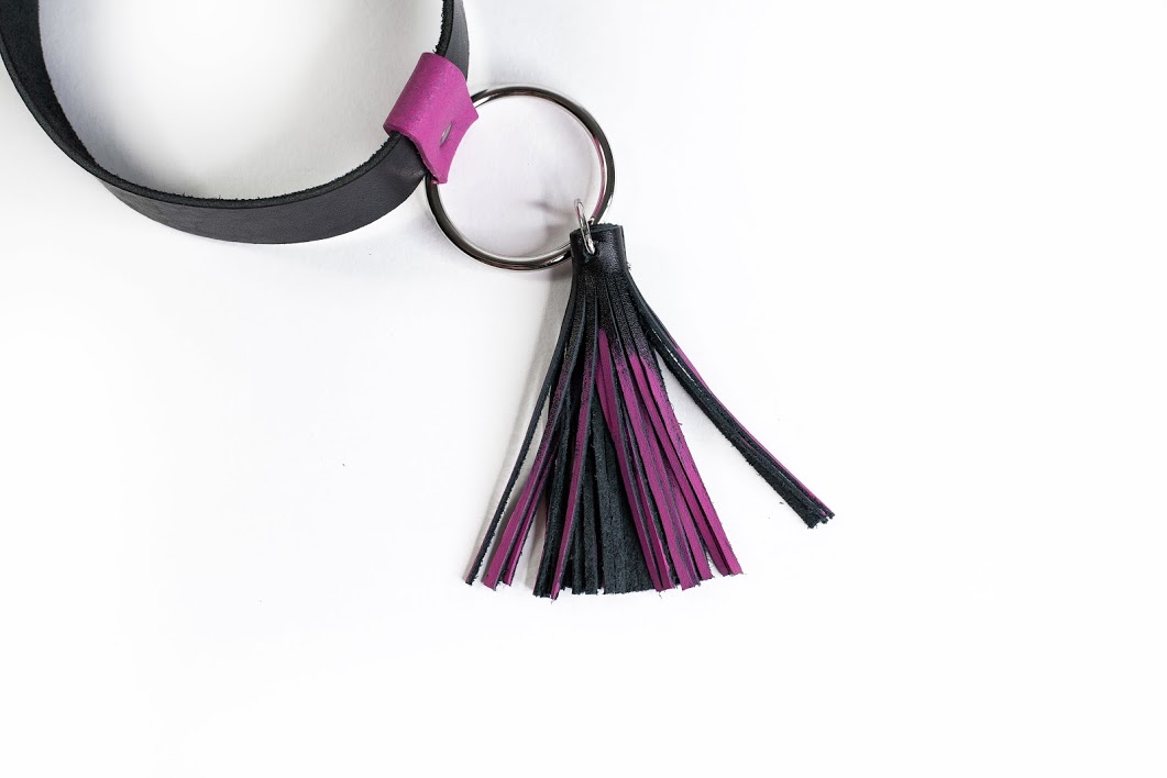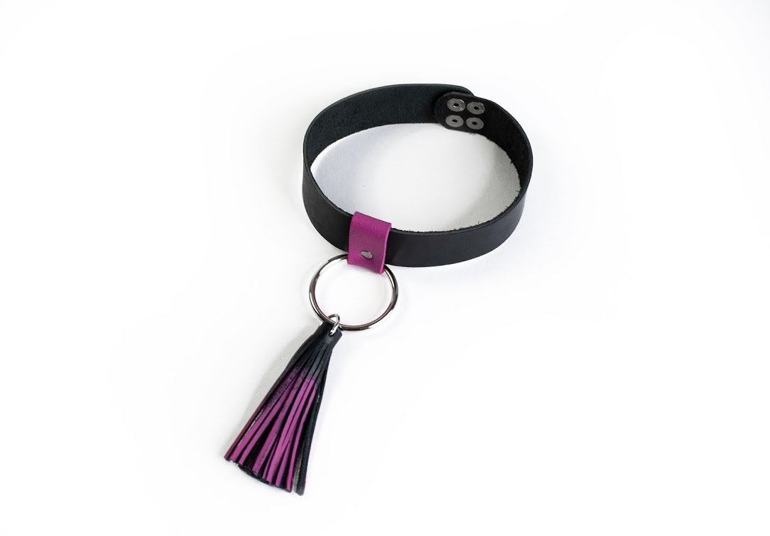 Чокер-ошейник с длинной кисточкой и кольцом. Ручная работа.