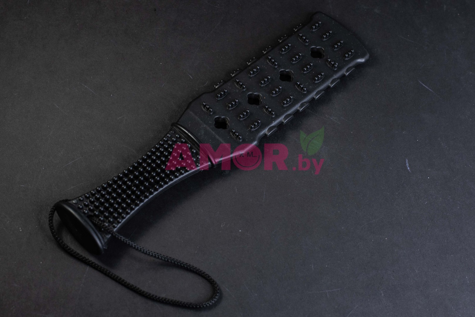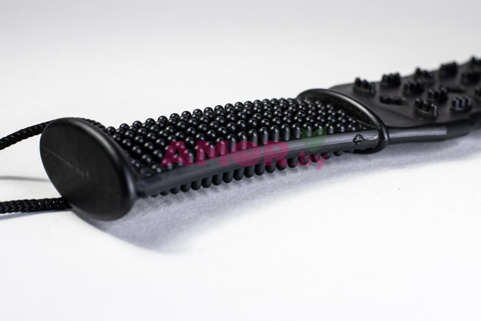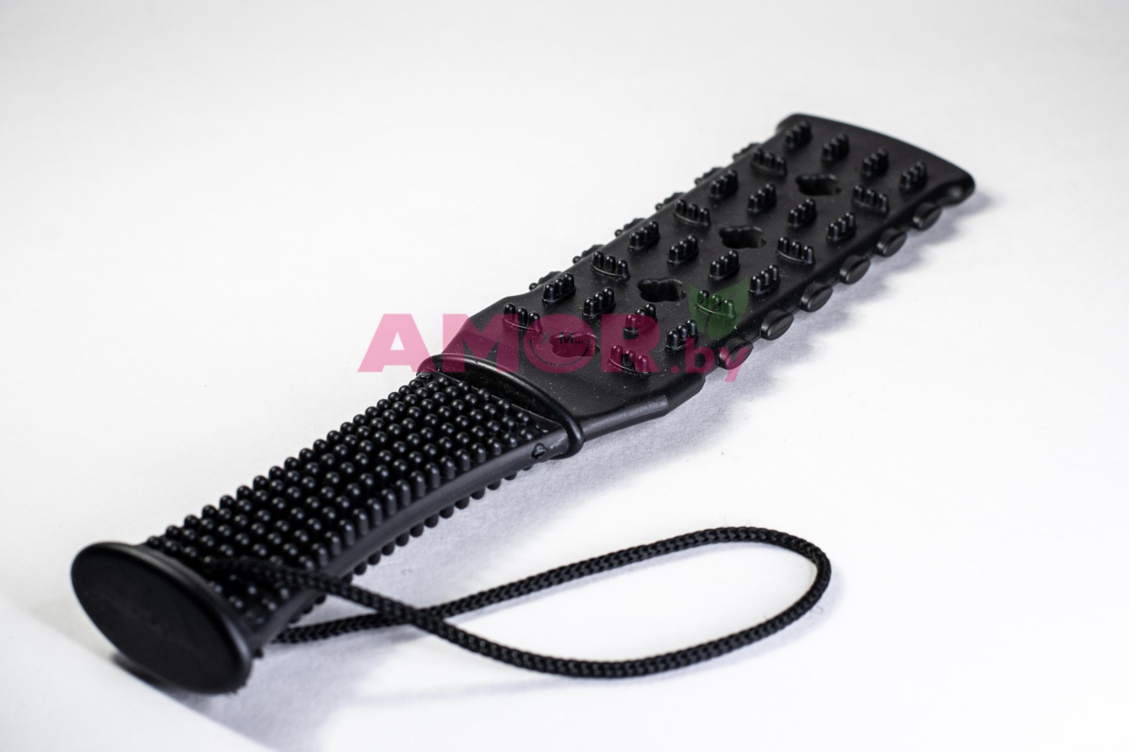 Универсальный пэдл для опытных BDSM-практикующих. Ручка и ударная часть покрыта рельефом. Пластмассовые шипы могут создать на вашей коже самые оригинальные и страстные узоры. Пэдл считается ударным аксессуаром, но его можно использовать и для поглаживания, а также массажа шипами. Аксессуар из серии Фетиш.