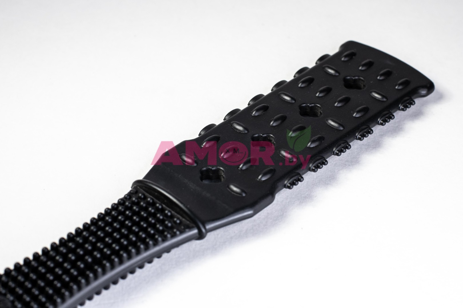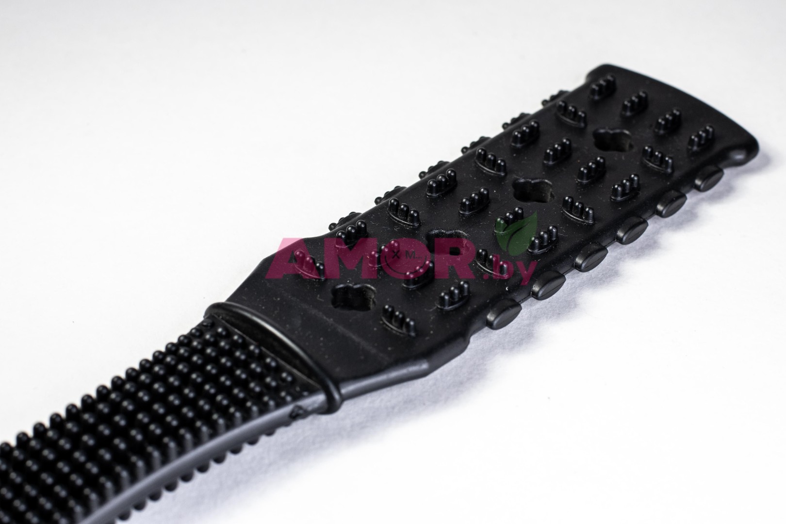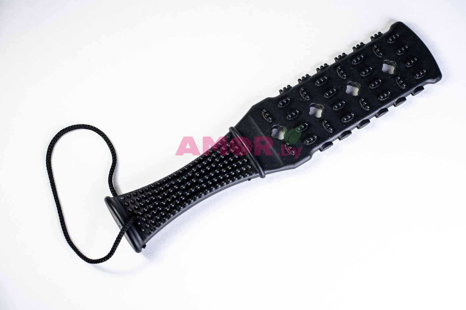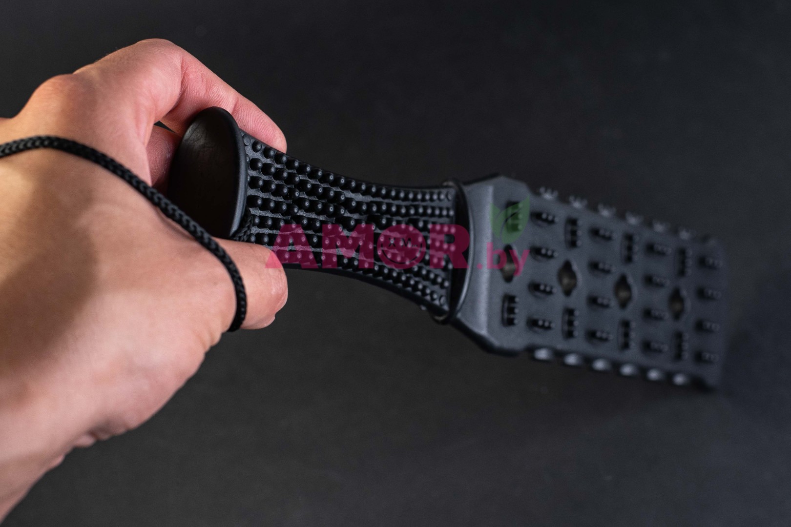 Универсальный пэдл для опытных BDSM-практикующих. Ручка и ударная часть покрыта рельефом. Пластмассовые шипы могут создать на вашей коже самые оригинальные и страстные узоры. Пэдл считается ударным аксессуаром, но его можно использовать и для поглаживания, а также массажа шипами. Аксессуар из серии Фетиш.