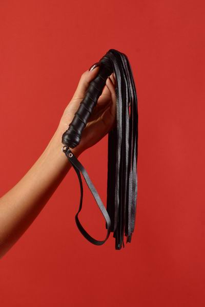 Роскошный флогер с комфортной ручкой, увитой изящными завитками натуральной кожи – шикарное дополнение и равноправный участник интимных игр и любовных схваток.