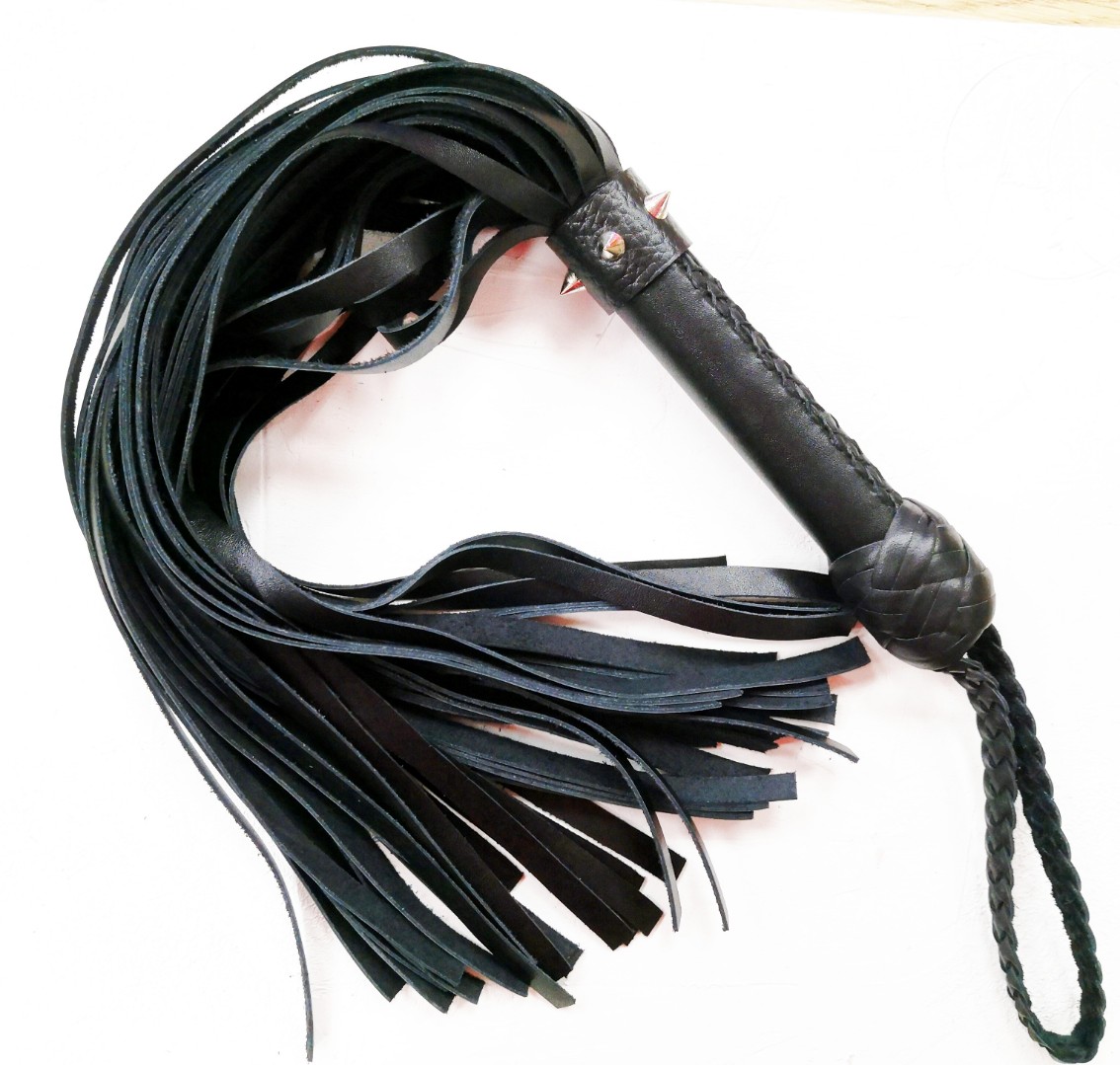 Флогер из натуральной кожи с плетёной рукояткой. Отлично подходит для произведения как прямых, так и скользящих ударов! Имеет 47 хвостов. Покрытие хвостов: С одной стороны - глянцевая кожа, с другой - нежный замш. Это будут самые непередаваемые ощущения!