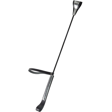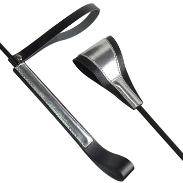 Длинный изящный стек в хлопушкой на конце идеально подходит для БДСМ-игр! Серебристый строгий цвет настроит на серьезный и в то же время игривый лад. Плоская рукоять удобно ложится в руку. Хлыст из углепластика с нейлоновым плетеным покрытием, что делает предмет необычайно легким. Около рукояти ремешок-петля.