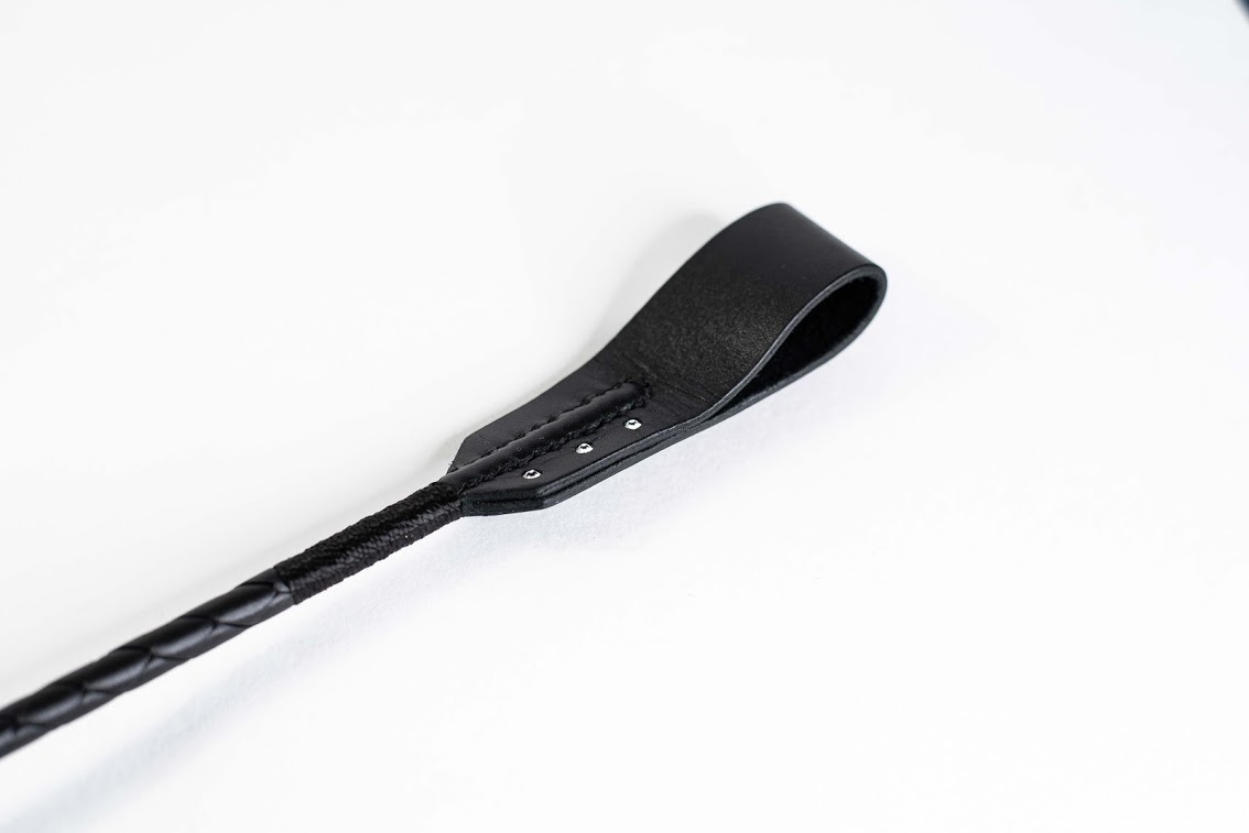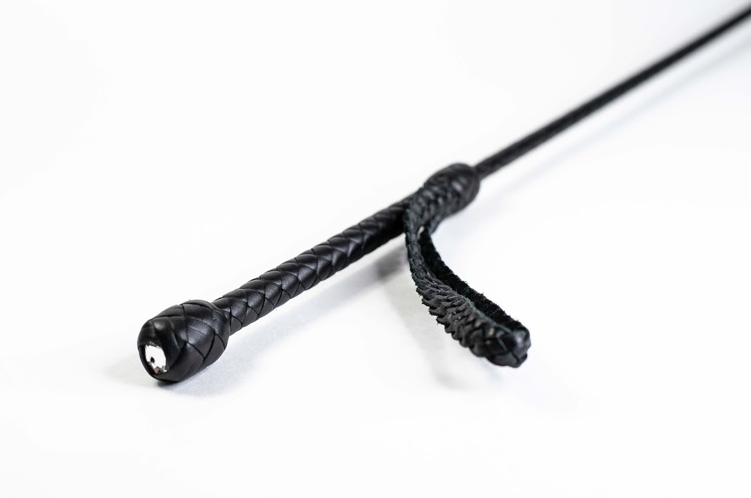 Стек из коллекции аксессуаров для ролевых игр в стиле БДСМ выполнен из высококачественной кожи. Декорирован прозрачными сияющими кристаллами Swarovski.