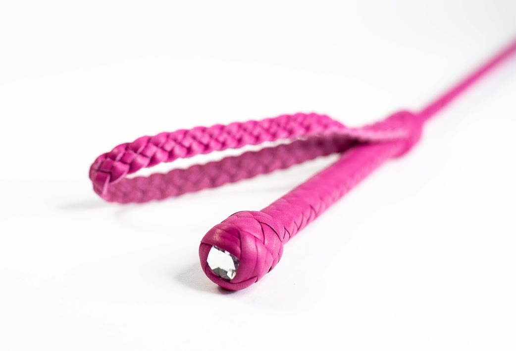 Стек из коллекции аксессуаров для ролевых игр в стиле БДСМ выполнен из высококачественной кожи. Декорирован прозрачными сияющими кристаллами Swarovski.