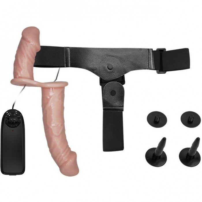 Двойной страпон с вибрацией позволит Вам воплотить в реальность эротические фантазии, испытать массу ярких ощущений и доставить партнеру незабываемое наслаждение! Страпон надевается трусиками на удобной регулируемой резинке, с погружением маленького фаллоса вагинально в женщину. Более длинный фаллос используется, как обычный страпон. Чем сильнее будут ваши движения, тем сильнее отклик Вы почувствуете! Вибрация регулируется с помощью пульта управления, при желании ее можно отключить.