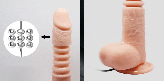 Функция вибрации, вращение массажных шариков в головке игрушки, а также поступательные движения вверх-вниз, имитирующие фрикции полового члена - настоящее тройное комбо удовольствия!